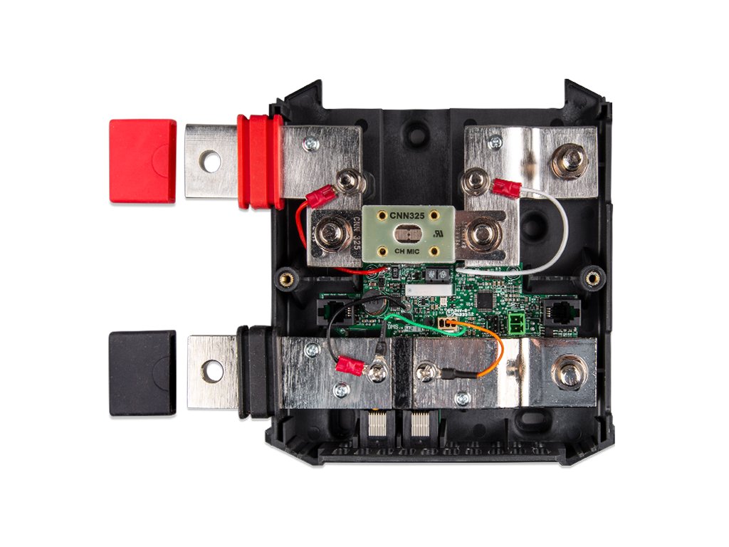 Bočník Lynx Shunt obsahuje kladnú prípojnicu so skrutkami na montáž CNN poistky a zápornú prípojnicu s meracím bočníkom. Lynx Shunt obsahuje aj elektroniku pre monitorovanie a môže posielať informácie o batérii pomocou zbernice VE.CAN do GX zariadenia alebo do monitorovacieho systému CANbus tretích strán, ako je NMEA2000. Jednotky GX alebo tretích strán slúžia ako displej monitora batérie a používajú sa tiež na nastavenie vstavaného monitora batérie.